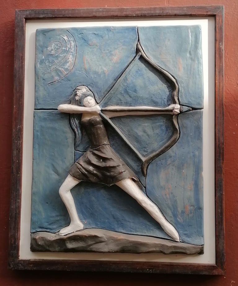 Artemisa, Diosa de la caza y la luna. Como hija de Zeus a los tres años le pidió nueve deseos: permanecer siempre virgen,tener multitud de nombres para diferenciarse de su hermano Apolo, ser la Phaesporia o dadora de luz, tener un arco y flechas, una túnica para poder cazar, tener sesenta "hijas del océano"para su coro, y veinte ninfas , gobernar sobre las montañas y poder ayudar a las mujeres en los dolores de parto.